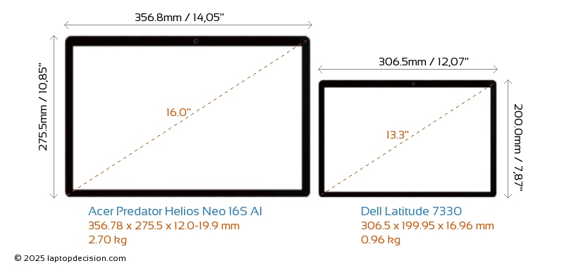 HDMIBoth Predator Helios Neo 16S AI and Latitude 7330 feature an HDMI port. Predator Helios Neo 16S AI offers 1x HDMI 2.1, while Latitude 7330 offers 1x HDMI 2.0.