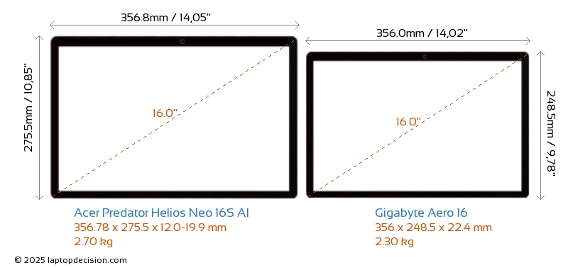 HDMI Predator Helios Neo 16S AI features an HDMI port (1x HDMI 2.1) for connecting to external monitors. Aero 16 does not have an HDMI port.