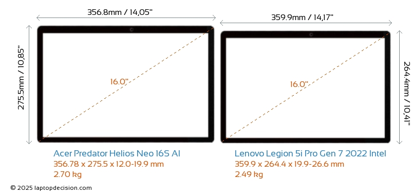 HDMI Predator Helios Neo 16S AI features an HDMI port (1x HDMI 2.1) for connecting to external monitors. Legion 5i Pro Gen 7 2022 Intel does not have an HDMI port.