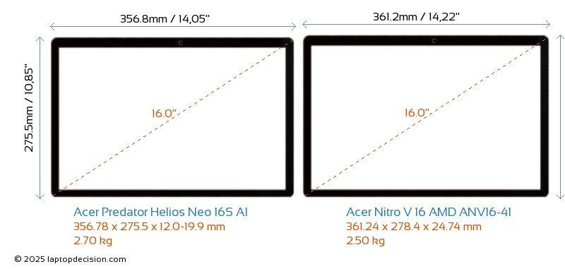 HDMIBoth Predator Helios Neo 16S AI and Nitro V 16 AMD ANV16-41 feature an HDMI port (1x HDMI 2.1) for connecting to external monitors.
