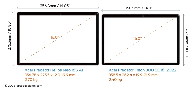 HDMIBoth Predator Helios Neo 16S AI and Predator Triton 300 SE 16 2022 feature an HDMI port (1x HDMI 2.1) for connecting to external monitors.