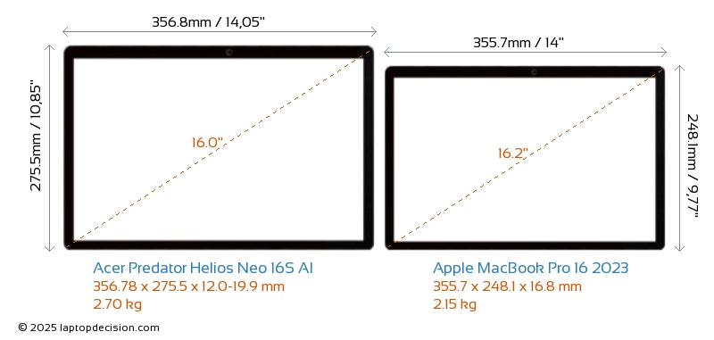 HDMIBoth Predator Helios Neo 16S AI and MacBook Pro 16 2023 feature an HDMI port (1x HDMI 2.1) for connecting to external monitors.