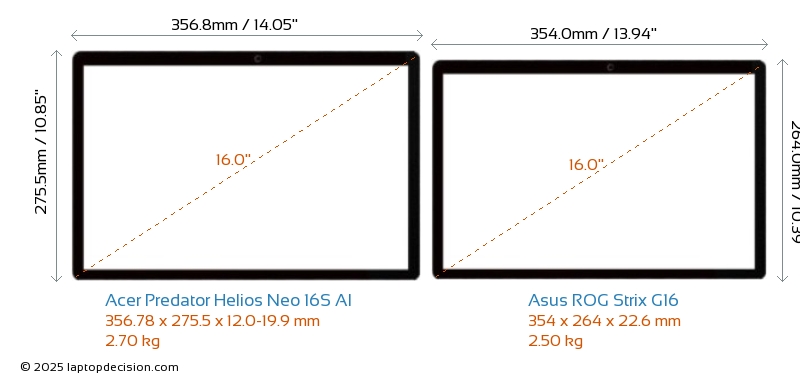 HDMIBoth Predator Helios Neo 16S AI and ROG Strix G16 feature an HDMI port (1x HDMI 2.1) for connecting to external monitors.