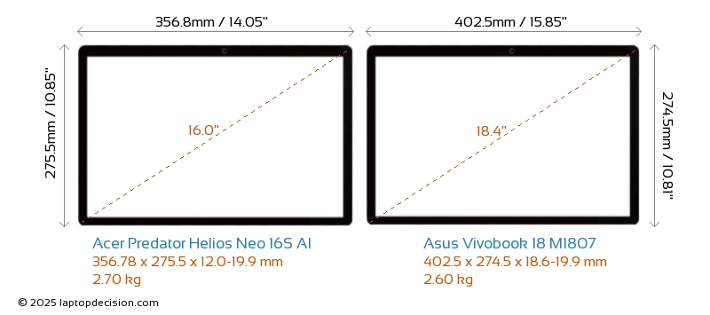 SD Card Reader Predator Helios Neo 16S AI is equipped with an SD Card Reader for easy access to memory cards. Vivobook 18 M1807 does not have an SD Card Reader.
