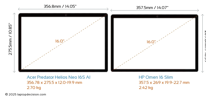 HDMIBoth Predator Helios Neo 16S AI and Omen 16 Slim feature an HDMI port (1x HDMI 2.1) for connecting to external monitors.