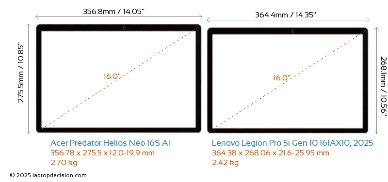 HDMIBoth Predator Helios Neo 16S AI and Legion Pro 5i Gen 10 16IAX10, 2025 feature an HDMI port (1x HDMI 2.1) for connecting to external monitors.
