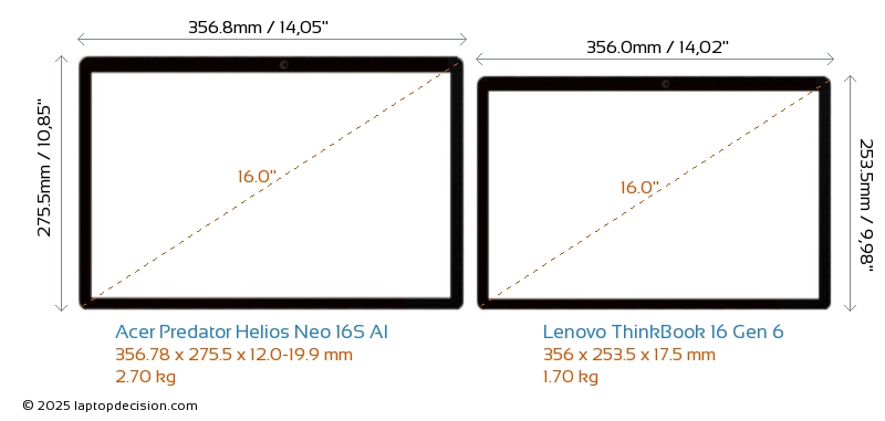 HDMIBoth Predator Helios Neo 16S AI and ThinkBook 16 Gen 6 feature an HDMI port (1x HDMI 2.1) for connecting to external monitors.