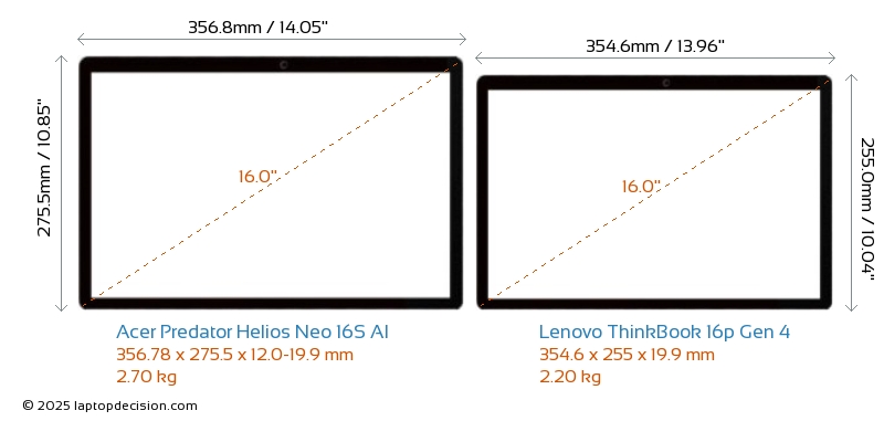 HDMIBoth Predator Helios Neo 16S AI and ThinkBook 16p Gen 4 feature an HDMI port (1x HDMI 2.1) for connecting to external monitors.