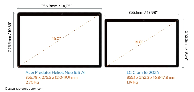 HDMIBoth Predator Helios Neo 16S AI and Gram 16 2024 feature an HDMI port (1x HDMI 2.1) for connecting to external monitors.