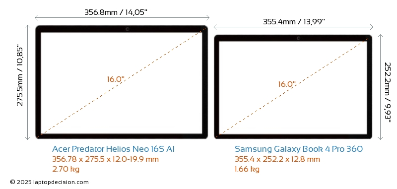 HDMIBoth Predator Helios Neo 16S AI and Galaxy Book 4 Pro 360 feature an HDMI port (1x HDMI 2.1) for connecting to external monitors.