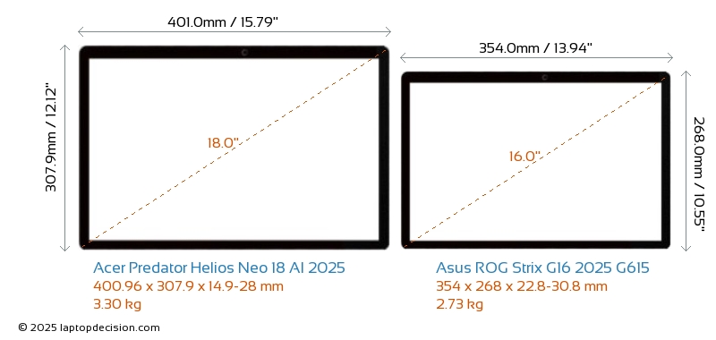 HDMIBoth Predator Helios Neo 18 AI 2025 and ROG Strix G16 2025 G615 feature an HDMI port (1x HDMI 2.1) for connecting to external monitors.