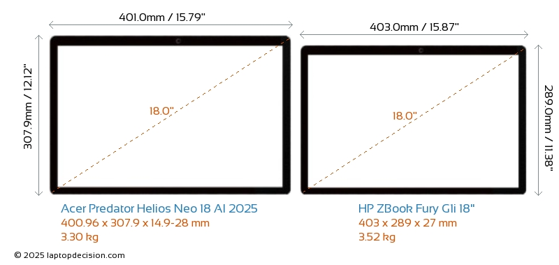 HDMIBoth Predator Helios Neo 18 AI 2025 and ZBook Fury G1i 18" feature an HDMI port (1x HDMI 2.1) for connecting to external monitors.