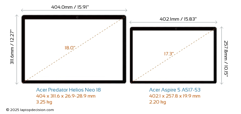 SD Card Reader Predator Helios Neo 18 is equipped with an SD Card Reader for easy access to memory cards. Aspire 5 A517-53 does not have an SD Card Reader.