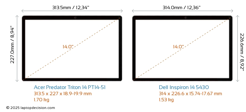 ThunderboltBoth Predator Triton 14 PT14-51 and Inspiron 14 5430 are equipped with Thunderbolt 4 ports.