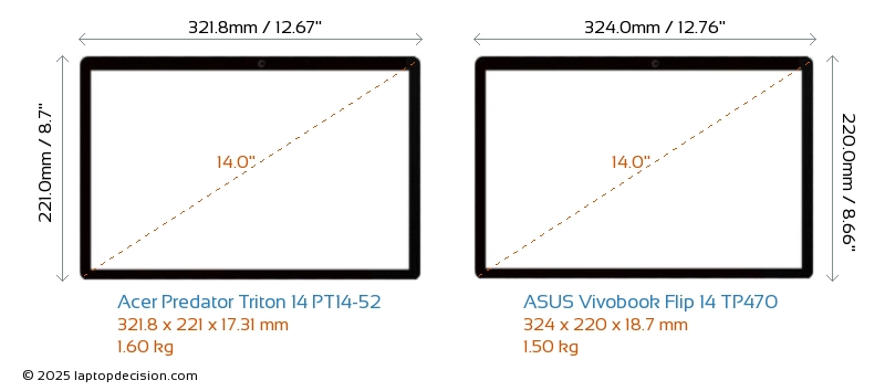 ThunderboltBoth Predator Triton 14 PT14-52 and Vivobook Flip 14 TP470 are equipped with Thunderbolt 4 ports.