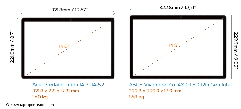 ThunderboltBoth Predator Triton 14 PT14-52 and Vivobook Pro 14X OLED 12th Gen Intel are equipped with Thunderbolt 4 ports.