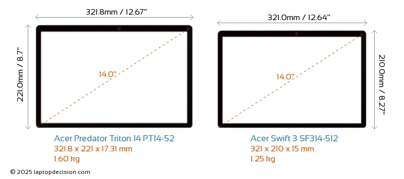 SD Card Reader Predator Triton 14 PT14-52 is equipped with an SD Card Reader for easy access to memory cards. Swift 3 SF314-512 does not have an SD Card Reader.