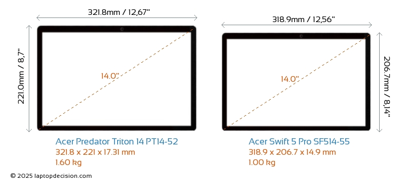 SD Card Reader Predator Triton 14 PT14-52 is equipped with an SD Card Reader for easy access to memory cards. Swift 5 Pro SF514-55 does not have an SD Card Reader.