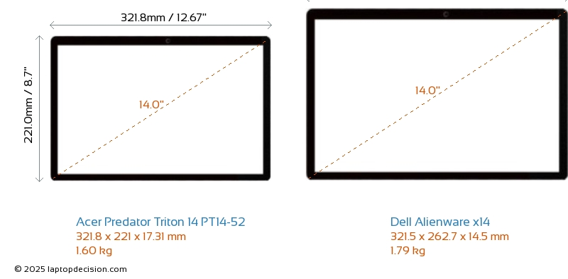 USBBoth Predator Triton 14 PT14-52 and Alienware x14 have USB-A ports. Predator Triton 14 PT14-52 has 2x USB 3.2 USB-A ports, while Alienware x14 has 1x USB 3.2 USB-A ports.Both Predator Triton 14 PT14-52 and Alienware x14 have USB Type-C ports. Predator Triton 14 PT14-52 has 2x USB 3.2 USB Type-C ports, while Alienware x14 has 3x USB 3.2 USB Type-C ports.