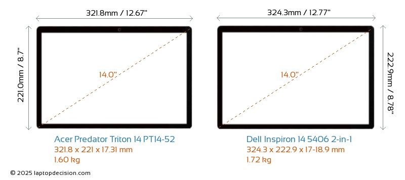 HDMIBoth Predator Triton 14 PT14-52 and Inspiron 14 5406 2-in-1 feature an HDMI port. Predator Triton 14 PT14-52 offers 1x HDMI 2.1, while Inspiron 14 5406 2-in-1 offers 1x HDMI 1.4.