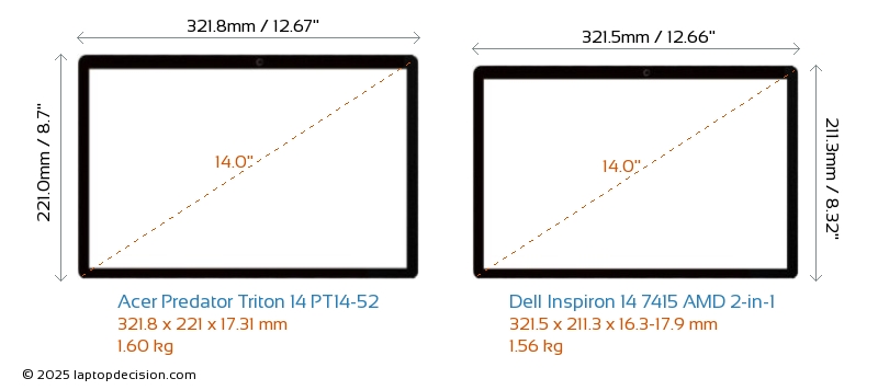 HDMIBoth Predator Triton 14 PT14-52 and Inspiron 14 7415 AMD 2-in-1 feature an HDMI port. Predator Triton 14 PT14-52 offers 1x HDMI 2.1, while Inspiron 14 7415 AMD 2-in-1 offers 1x HDMI 1.4.