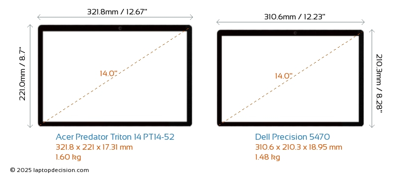 HDMI Predator Triton 14 PT14-52 features an HDMI port (1x HDMI 2.1) for connecting to external monitors. Precision 5470 does not have an HDMI port.