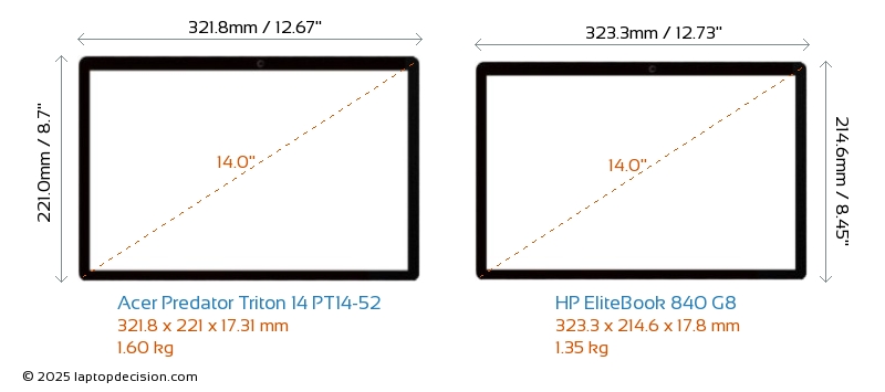 USBBoth Predator Triton 14 PT14-52 and EliteBook 840 G8 feature 2x USB 3.2 USB-A ports.Both Predator Triton 14 PT14-52 and EliteBook 840 G8 feature 2x USB 3.2 USB Type-C ports.