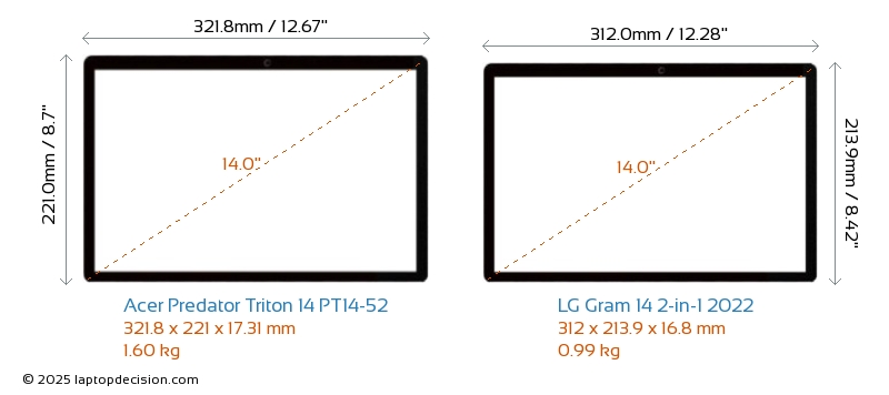 ThunderboltBoth Predator Triton 14 PT14-52 and Gram 14 2-in-1 2022 are equipped with Thunderbolt 4 ports.