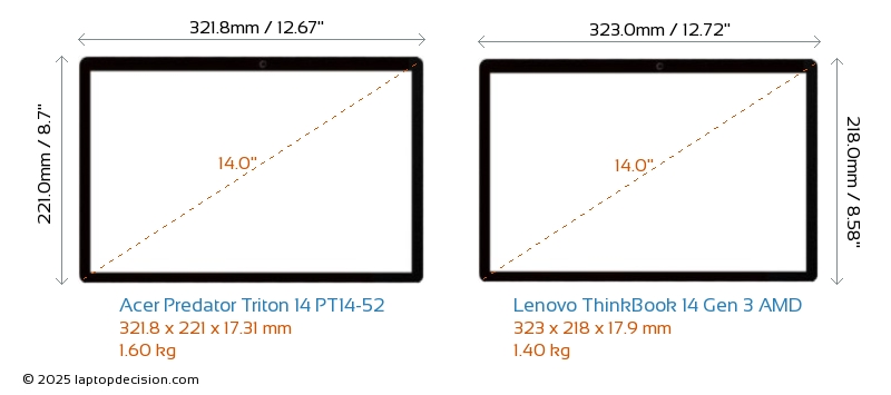 HDMIBoth Predator Triton 14 PT14-52 and ThinkBook 14 Gen 3 AMD feature an HDMI port. Predator Triton 14 PT14-52 offers 1x HDMI 2.1, while ThinkBook 14 Gen 3 AMD offers 1x HDMI 1.4.