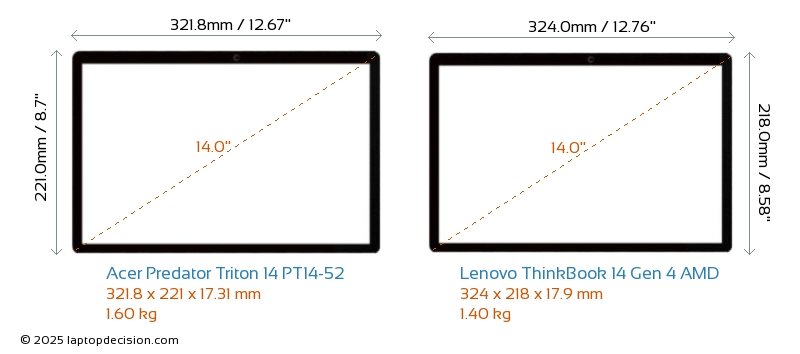 USBBoth Predator Triton 14 PT14-52 and ThinkBook 14 Gen 4 AMD feature 2x USB 3.2 USB-A ports.Both Predator Triton 14 PT14-52 and ThinkBook 14 Gen 4 AMD feature 2x USB 3.2 USB Type-C ports.