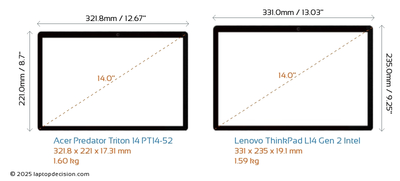 ThunderboltBoth Predator Triton 14 PT14-52 and ThinkPad L14 Gen 2 Intel are equipped with Thunderbolt 4 ports.