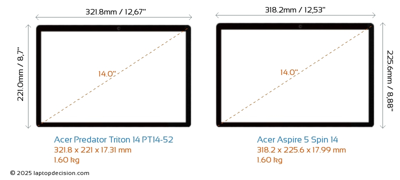 SD Card Reader Predator Triton 14 PT14-52 is equipped with an SD Card Reader for easy access to memory cards. Aspire 5 Spin 14 does not have an SD Card Reader.