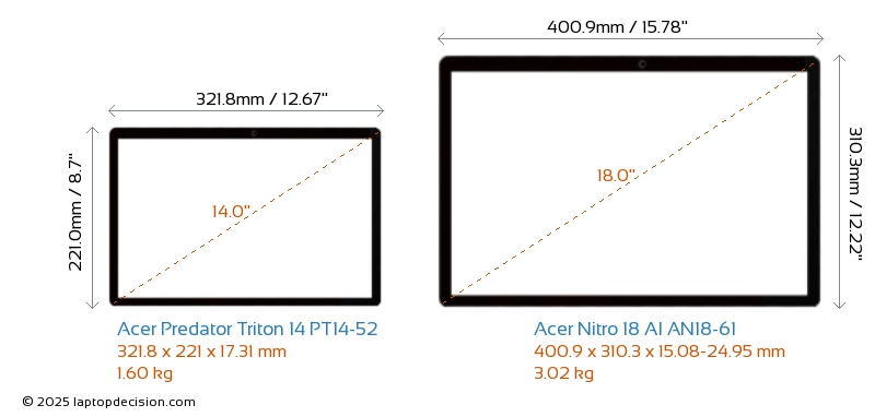 HDMIBoth Predator Triton 14 PT14-52 and Nitro 18 AI AN18-61 feature an HDMI port (1x HDMI 2.1) for connecting to external monitors.