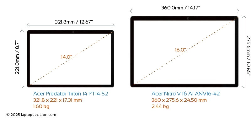 HDMIBoth Predator Triton 14 PT14-52 and Nitro V 16 AI ANV16-42 feature an HDMI port (1x HDMI 2.1) for connecting to external monitors.