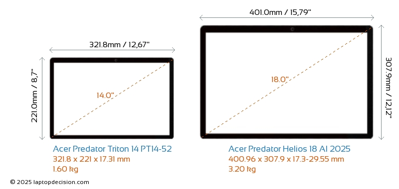 HDMIBoth Predator Triton 14 PT14-52 and Predator Helios 18 AI 2025 feature an HDMI port (1x HDMI 2.1) for connecting to external monitors.