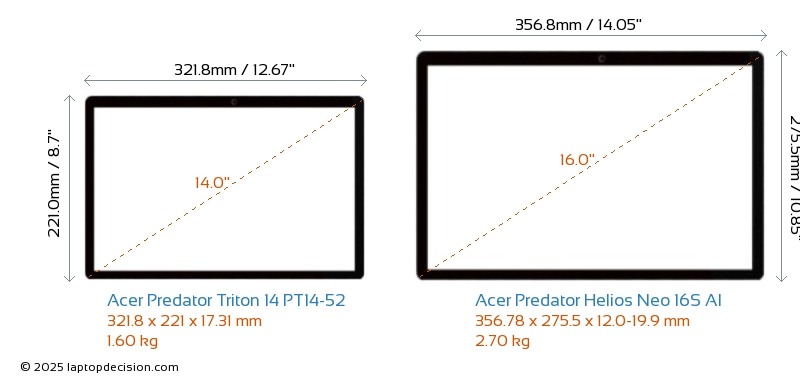 ThunderboltBoth Predator Triton 14 PT14-52 and Predator Helios Neo 16S AI are equipped with Thunderbolt 4 ports.