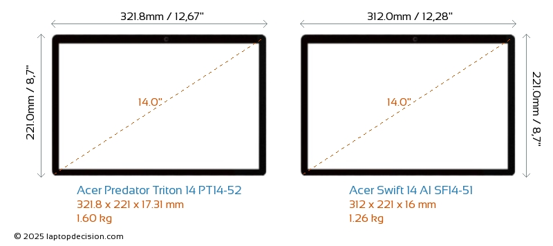 HDMIBoth Predator Triton 14 PT14-52 and Swift 14 AI SF14-51 feature an HDMI port (1x HDMI 2.1) for connecting to external monitors.