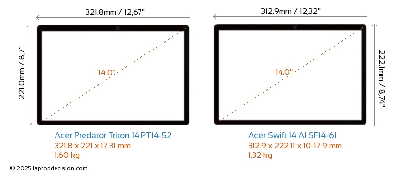HDMIBoth Predator Triton 14 PT14-52 and Swift 14 AI SF14-61 feature an HDMI port (1x HDMI 2.1) for connecting to external monitors.