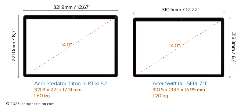 HDMIBoth Predator Triton 14 PT14-52 and Swift 14 - SF14-71T feature an HDMI port (1x HDMI 2.1) for connecting to external monitors.