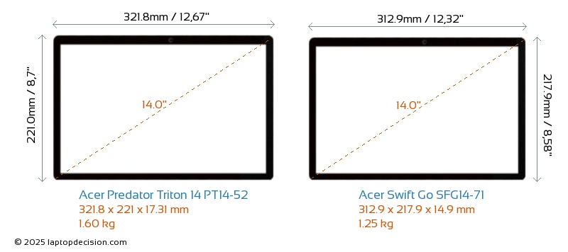HDMIBoth Predator Triton 14 PT14-52 and Swift Go SFG14-71 feature an HDMI port (1x HDMI 2.1) for connecting to external monitors.