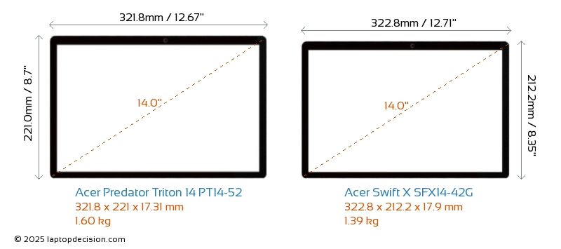 SD Card Reader Predator Triton 14 PT14-52 is equipped with an SD Card Reader for easy access to memory cards. Swift X SFX14-42G does not have an SD Card Reader.