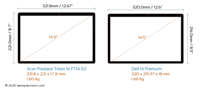 HDMI Predator Triton 14 PT14-52 features an HDMI port (1x HDMI 2.1) for connecting to external monitors. 14 Premium does not have an HDMI port.