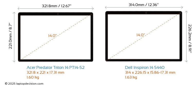 Thunderbolt Predator Triton 14 PT14-52 is equipped with Thunderbolt 4 port. Inspiron 14 5440 does not have Thunderbolt port.