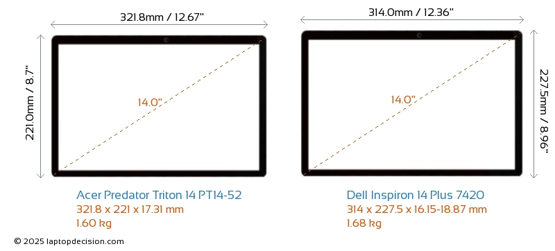 ThunderboltBoth Predator Triton 14 PT14-52 and Inspiron 14 Plus 7420 are equipped with Thunderbolt 4 ports.