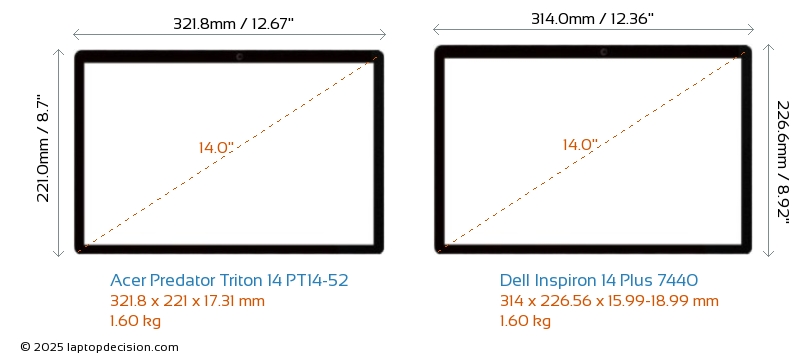 ThunderboltBoth Predator Triton 14 PT14-52 and Inspiron 14 Plus 7440 are equipped with Thunderbolt 4 ports.