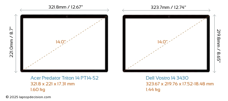 USBBoth Predator Triton 14 PT14-52 and Vostro 14 3430 feature 2x USB 3.2 USB-A ports.Both Predator Triton 14 PT14-52 and Vostro 14 3430 have USB Type-C ports. Predator Triton 14 PT14-52 has 2x USB 3.2 USB Type-C ports, while Vostro 14 3430 has 1x USB 3.2 USB Type-C ports.
