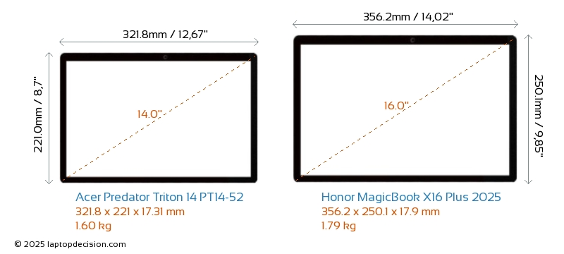 SD Card Reader Predator Triton 14 PT14-52 is equipped with an SD Card Reader for easy access to memory cards. MagicBook X16 Plus 2025 does not have an SD Card Reader.