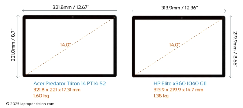 HDMIBoth Predator Triton 14 PT14-52 and Elite x360 1040 G11 feature an HDMI port (1x HDMI 2.1) for connecting to external monitors.