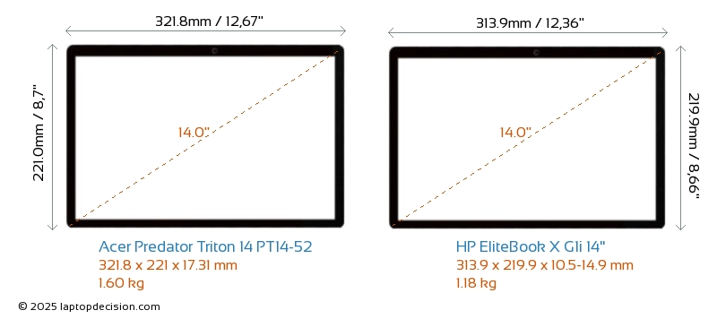 HDMIBoth Predator Triton 14 PT14-52 and EliteBook X G1i 14" feature an HDMI port (1x HDMI 2.1) for connecting to external monitors.