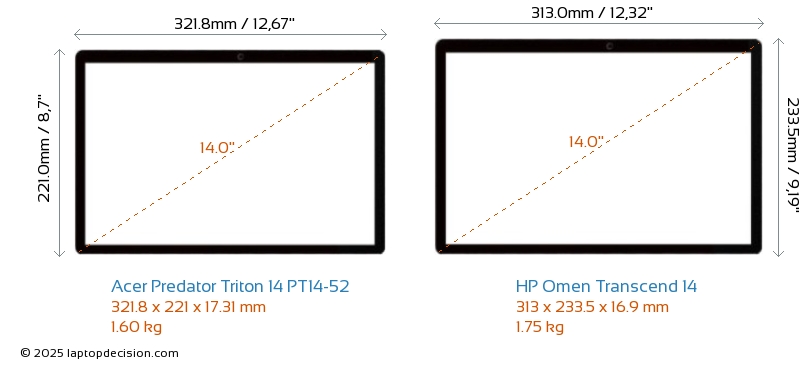 HDMIBoth Predator Triton 14 PT14-52 and Omen Transcend 14 feature an HDMI port (1x HDMI 2.1) for connecting to external monitors.